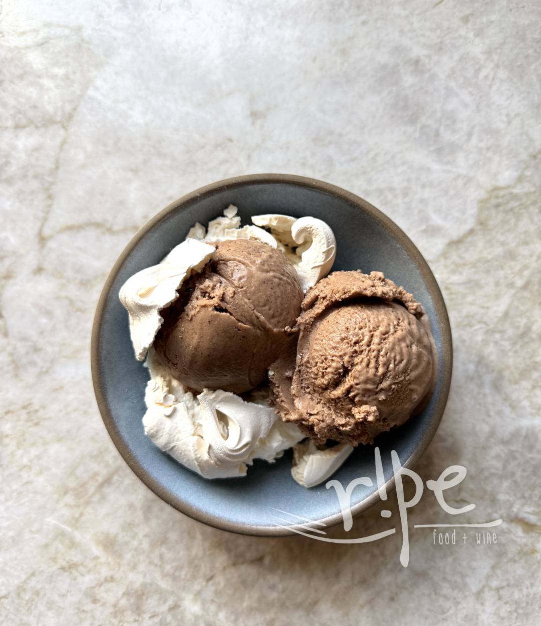 I’ve always loved the flavor of chocolate malt and set about making a malted version of my bittersweet chocolate ice cream. I used maca powder instead of buying malted milk powder (which is powdered milk plus malted barley and wheat flour); I settled on 1 tablespoon maca to 3 cups of milk/cream but you could push it to 2 tablespoons. For an extra-bittersweet chocolate experience, I swapped 2 ounces unsweetened chocolate for the bittersweet in the original recipe.